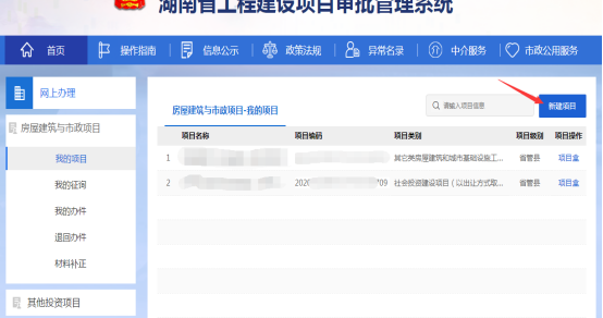 1. 输入企业统一社会信用代码和密码,进入法人账号界面,点新建项目创建新项目