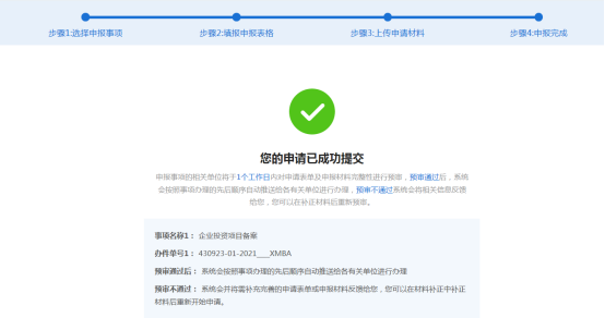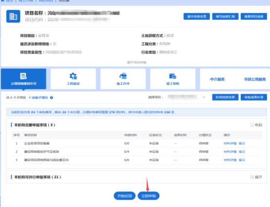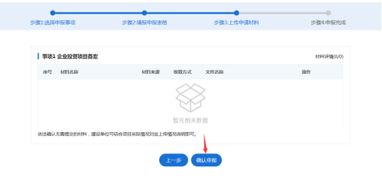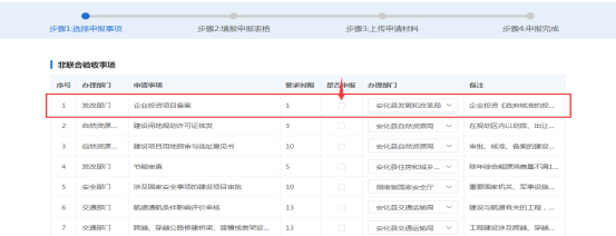5.勾选相应审批事项,其中政府类项目选择“政府投资项目可行性研究报告审批”,民间固定资产投资项目请选择“企业投资项目备案”,水电能源类项目选择“企业投资项目核准” 。点击——“提交”。