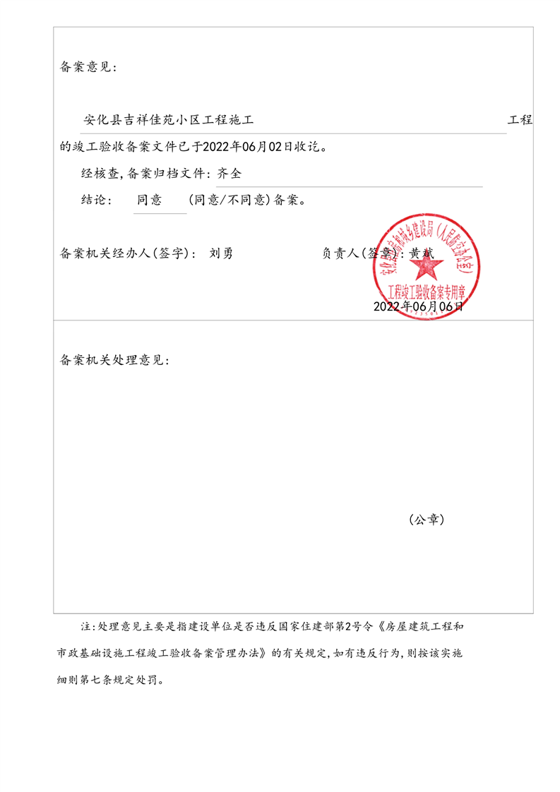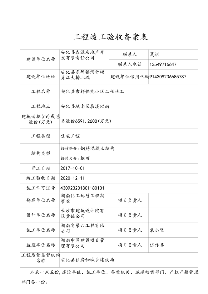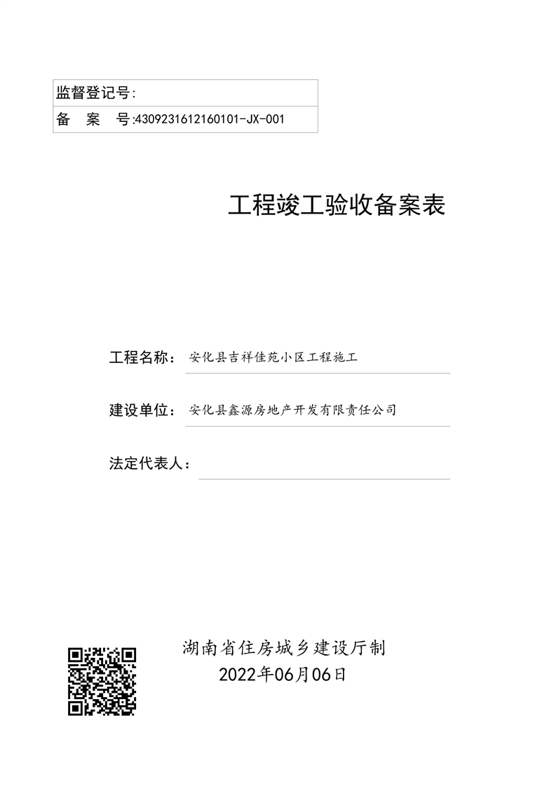 工程竣工验收备案表(安化县吉祥佳苑小区)
