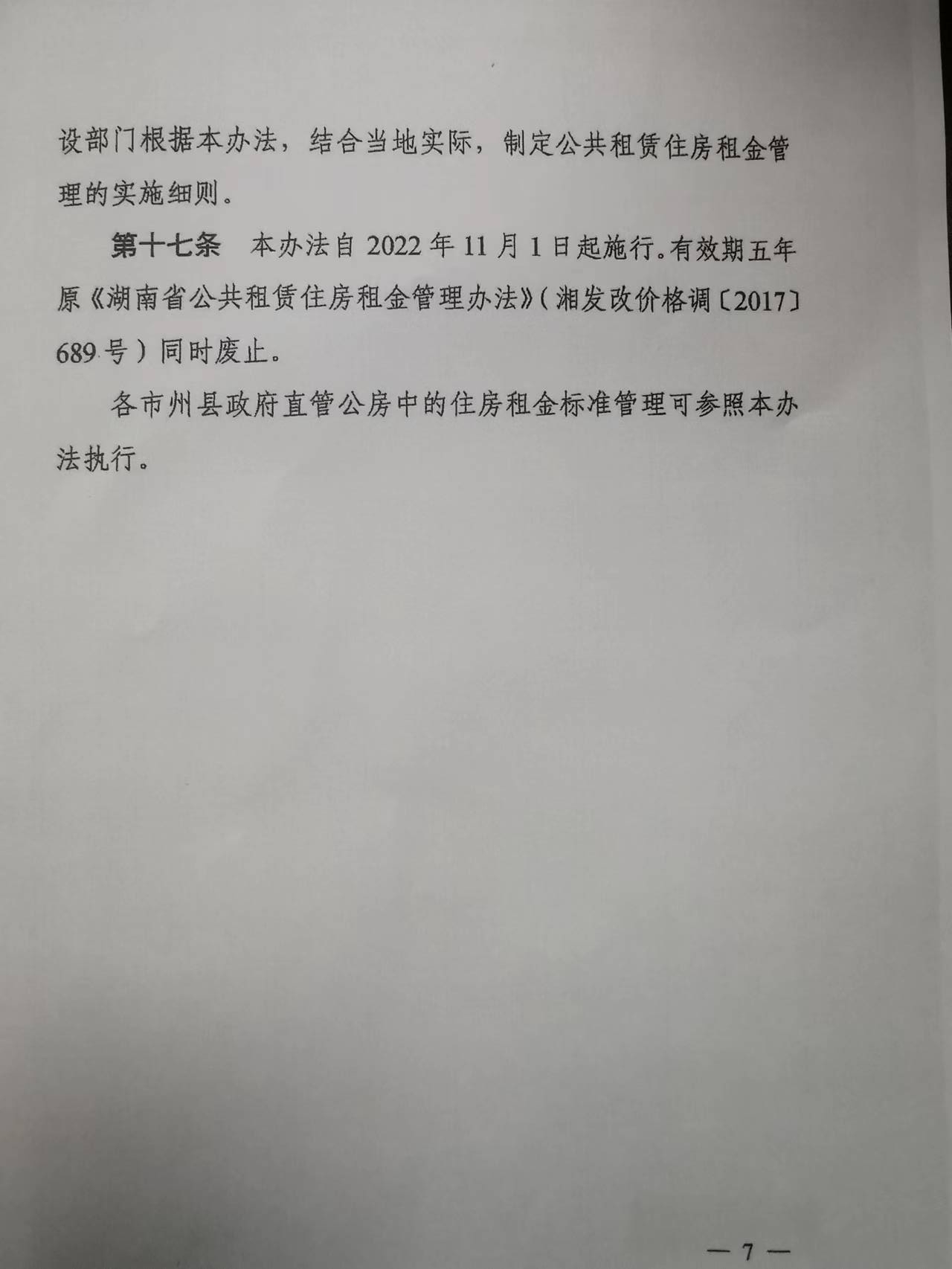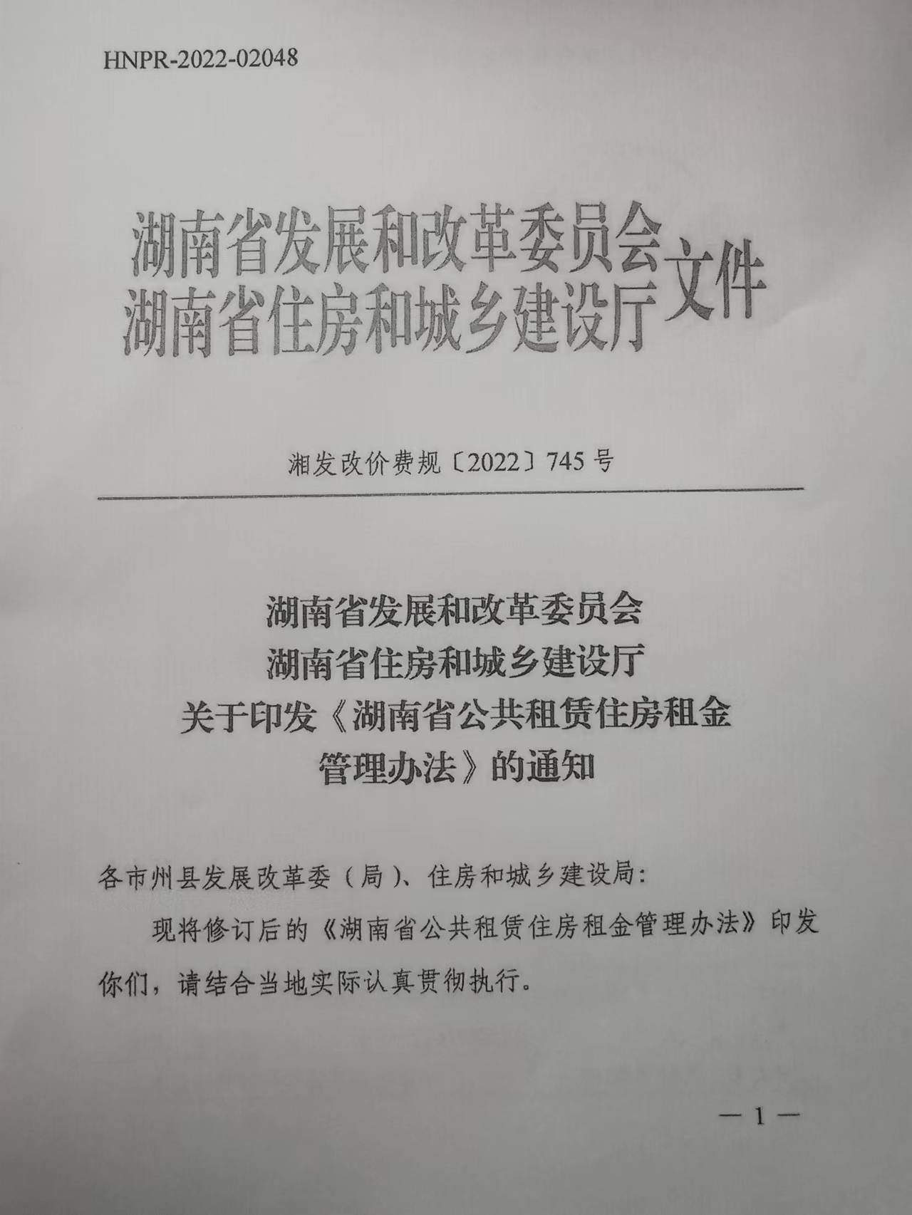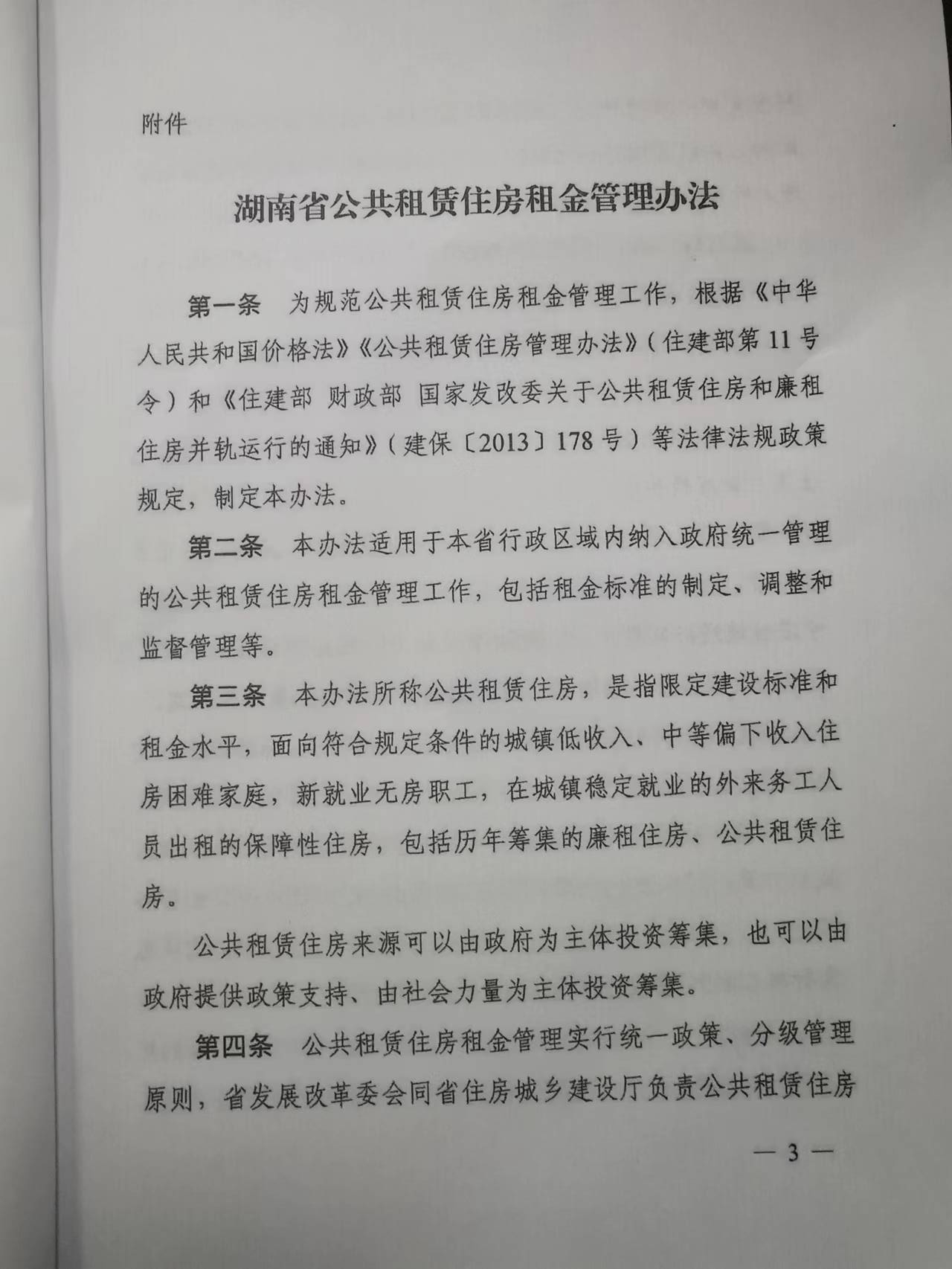 关于印发《湖南省公共租赁住房租金管理办法》的通知