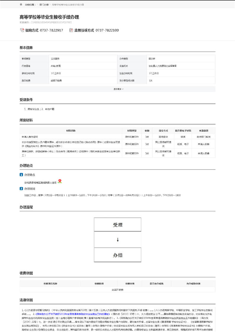 | 一级事项 | 高校毕业生就业服务 | 二级事项 | 高等学校等毕业生接收手续办理 |