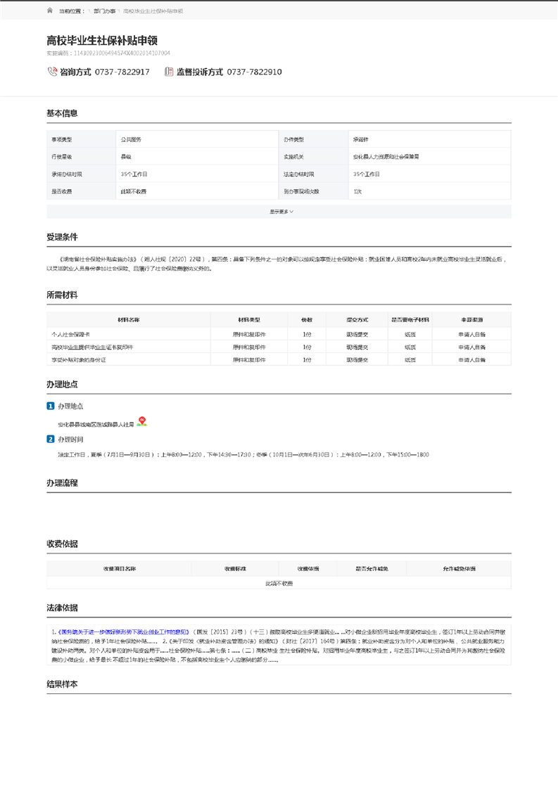 | 一级事项 | 高校毕业生就业服务 | 二级事项 | 高校毕业生社保补贴申领 |