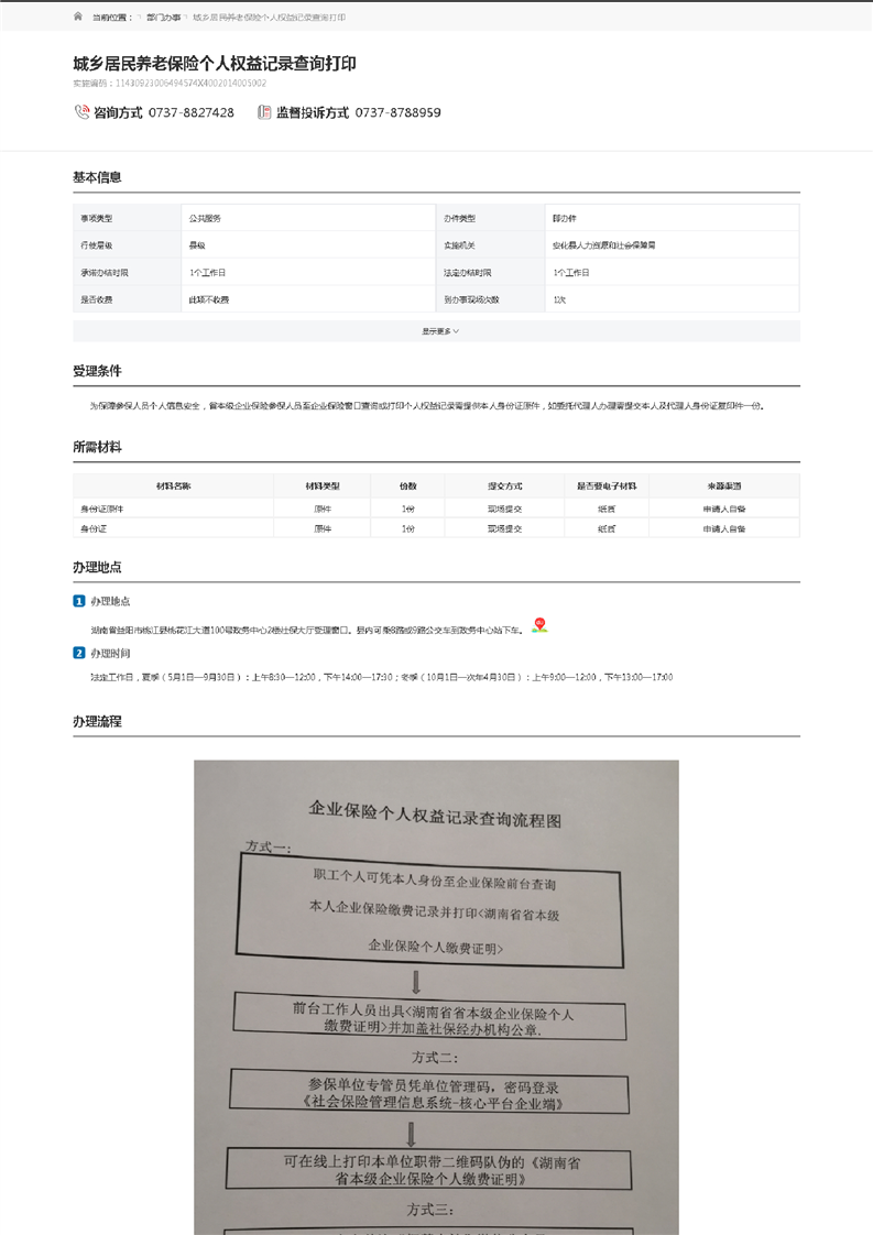 | 一级事项 | 社会保险参保缴费记录查询 | 二级事项 | 个人权益记录查询打印 |