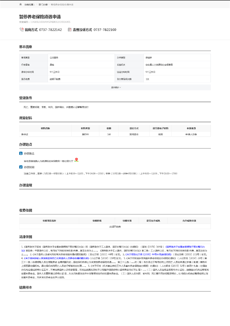 | 一级事项 | 养老保险服务 | 二级事项 | 暂停养老保险待遇申请 |