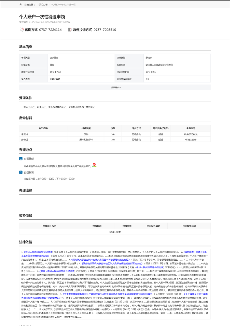 | 一级事项 | 养老保险服务 | 二级事项 | 个人账户一次性待遇申领 |