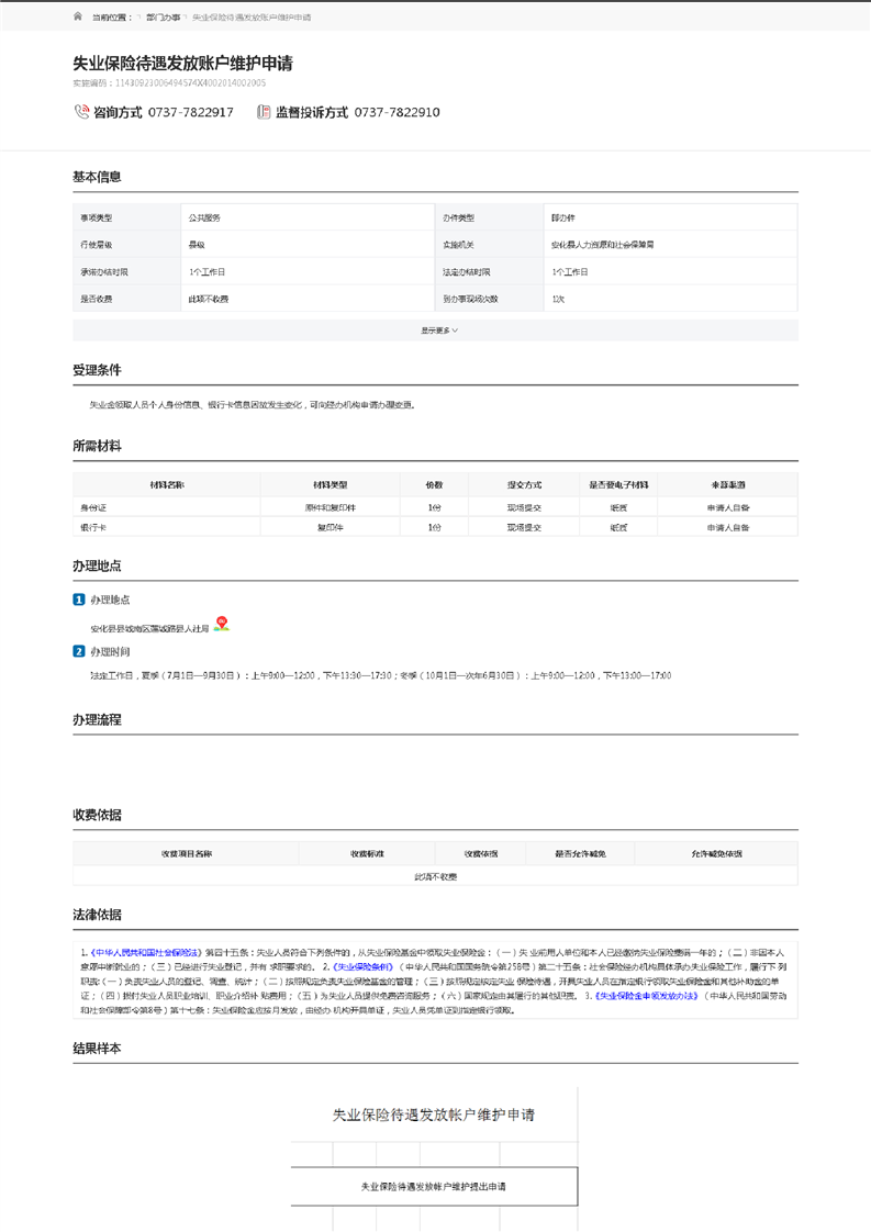| 一级事项 | 社会保险参保信息维护 | 二级事项 | 失业保险待遇发放账户维护申请 |
