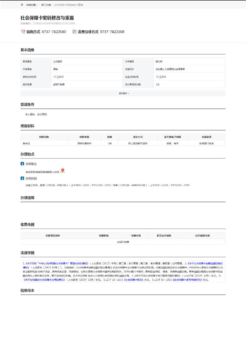 | 一级事项 | 社会保障卡服务 | 二级事项 | 社会保障卡密码修改与重置 |