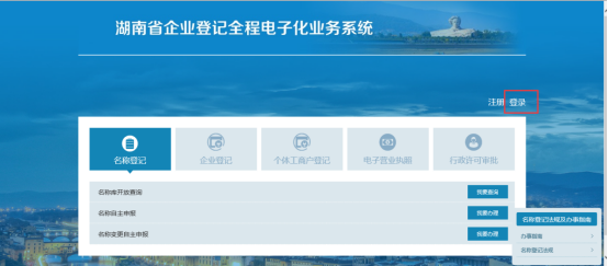 2. 从湖南省政务服务平台(一件事一次办)登录从省政务服务平台登录,必须先在省政务服务平台进行身份注册,或者直接用电子营业执照或国家政务服务平台账号登录。省政务服务平台与13个市州实现了单点登录(除长沙外),因此,只需在省政务服务平台登录一次即可在其他13个市州实现自动登录。
